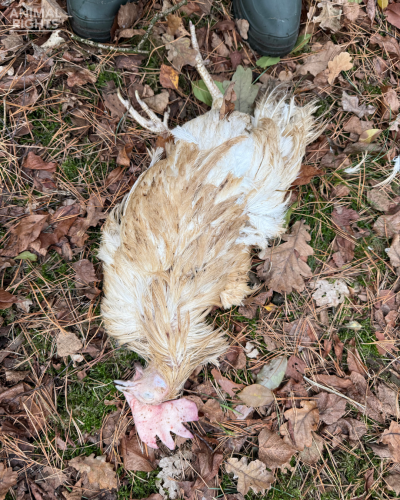 Uitgehongerde hennen en verscheurde kadavers