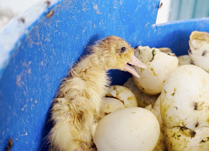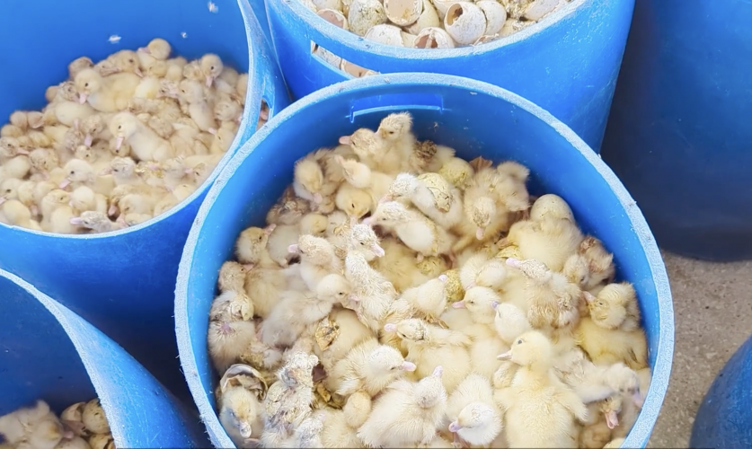 ‘Onbruikbare’ eenden worden doodgeslagen tegen de wanden van de stal of belanden levend tussen de kadavers waar ze langzaam creperen.